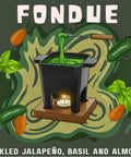 A unique, Mexican-inspired "pesto" fondue, featuring the kick of pickled jalapeños, fresh basil, and creamy almond butter.