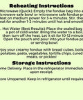 Enjoy our fondue as a quick snack, a starter, or as a delicious side dish for your next gathering. Simply reheat the bag in hot water or microwave the contents, then pour into your fondue pot or a serving bowl.